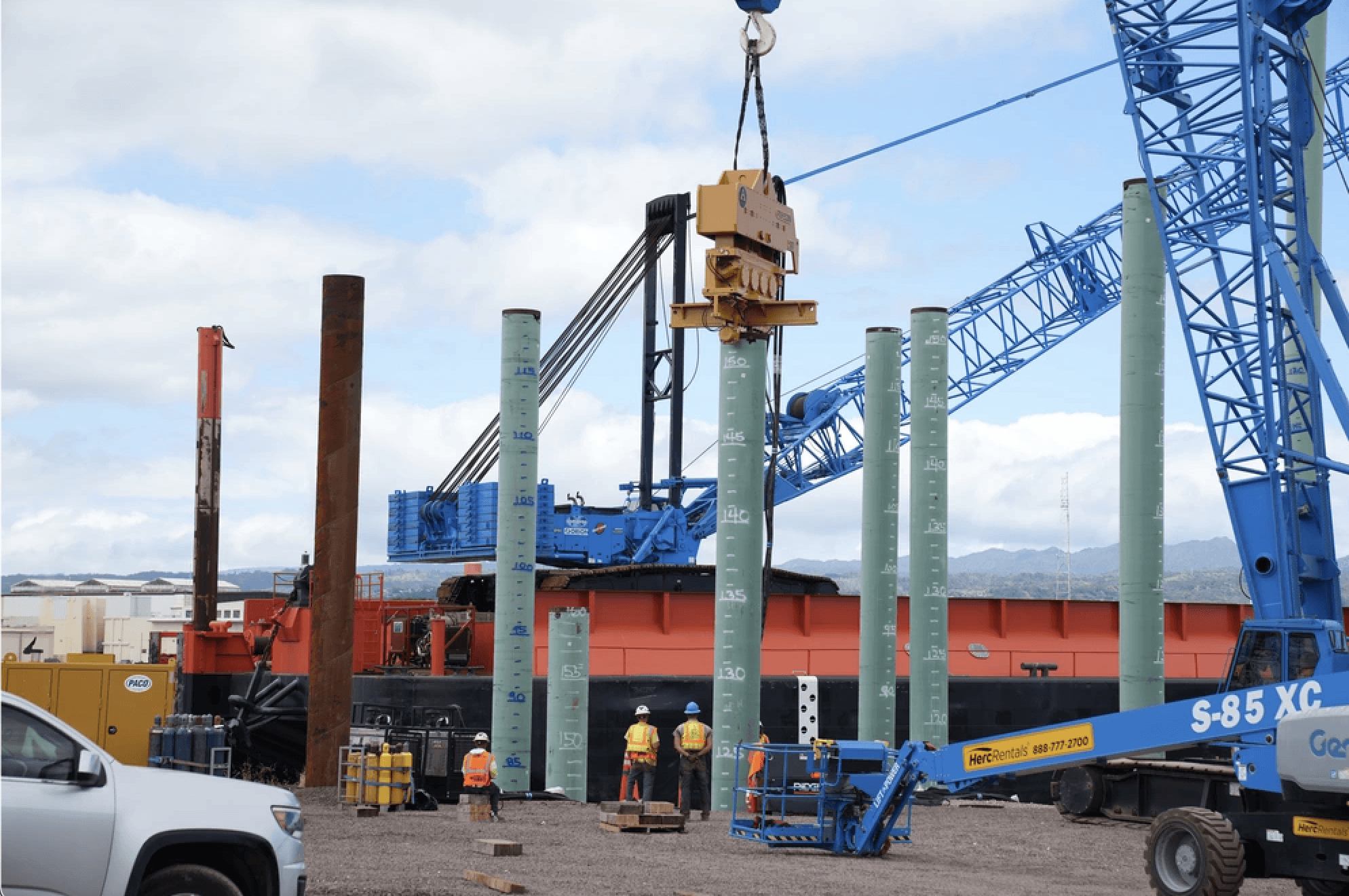 JOINT BASE PEARL HARBOR-HICKAM, HAWAII – Dragados/Hawaiian Dredging/Orion JV (DHO JV), under contract with Naval Facilities Engineering Systems Command (NAVFAC), has begun major in-water construction for a new dry dock at Pearl Harbor Naval Shipyard and Intermediate Maintenance Facility (PHNSY & IMF).